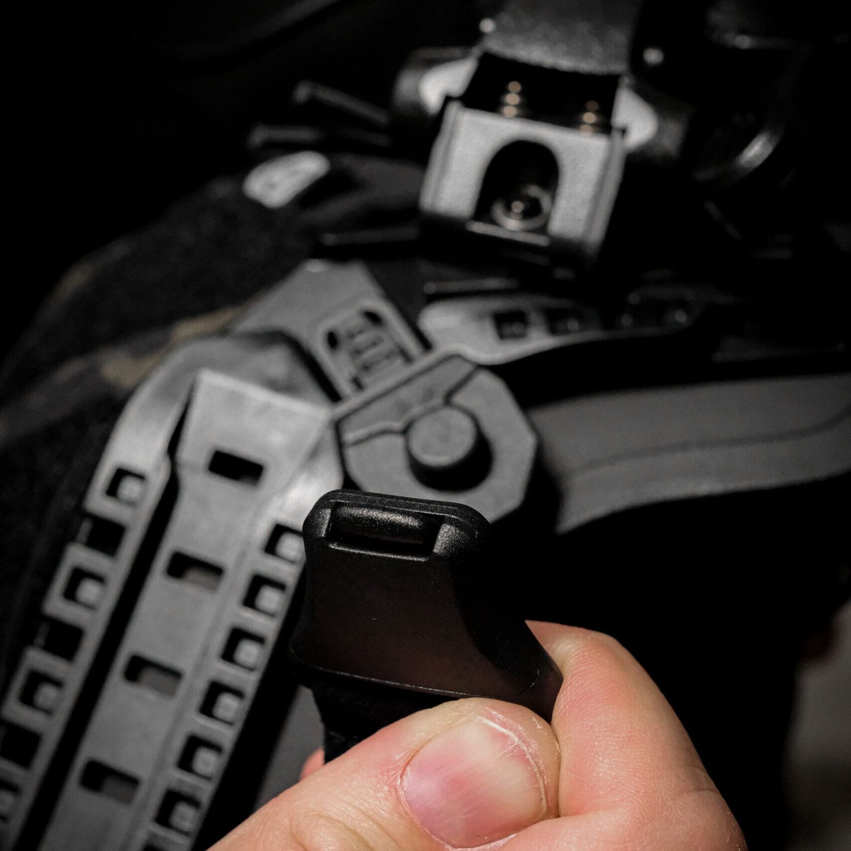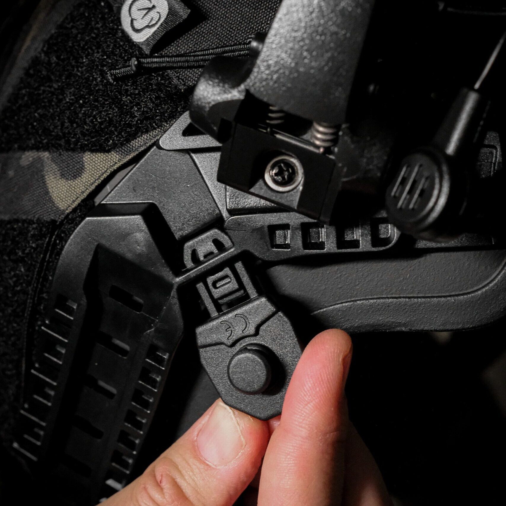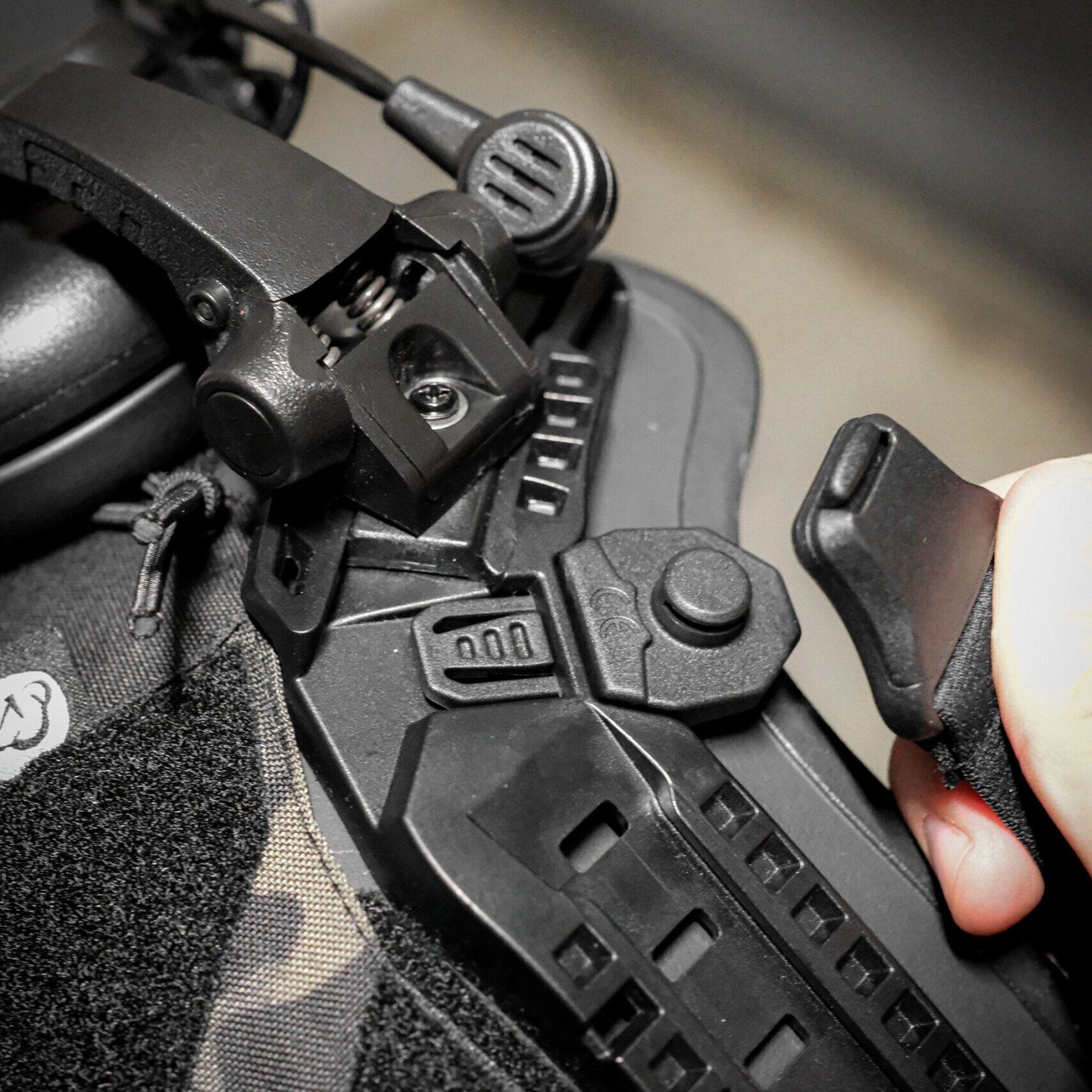 - article 18840, 18842, 18843: black headband with silicon wave-coating, black headband with two adjustable/ magnetic fasteners for strapping to a helmet rail system, microfiber bag and case (61176)